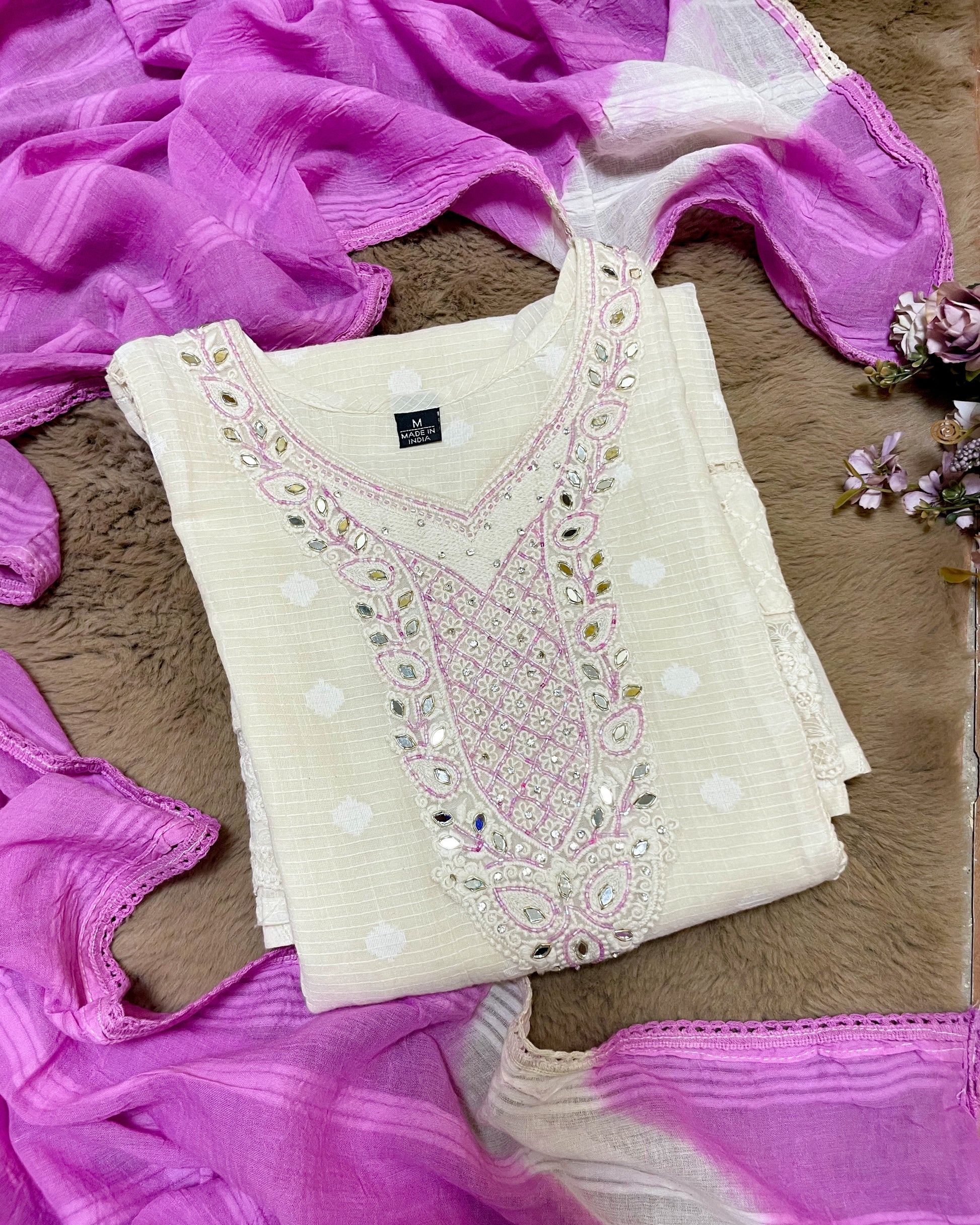 ✔ Set Includes: Kurta + Flared Pants + Two-Toned Dupatta