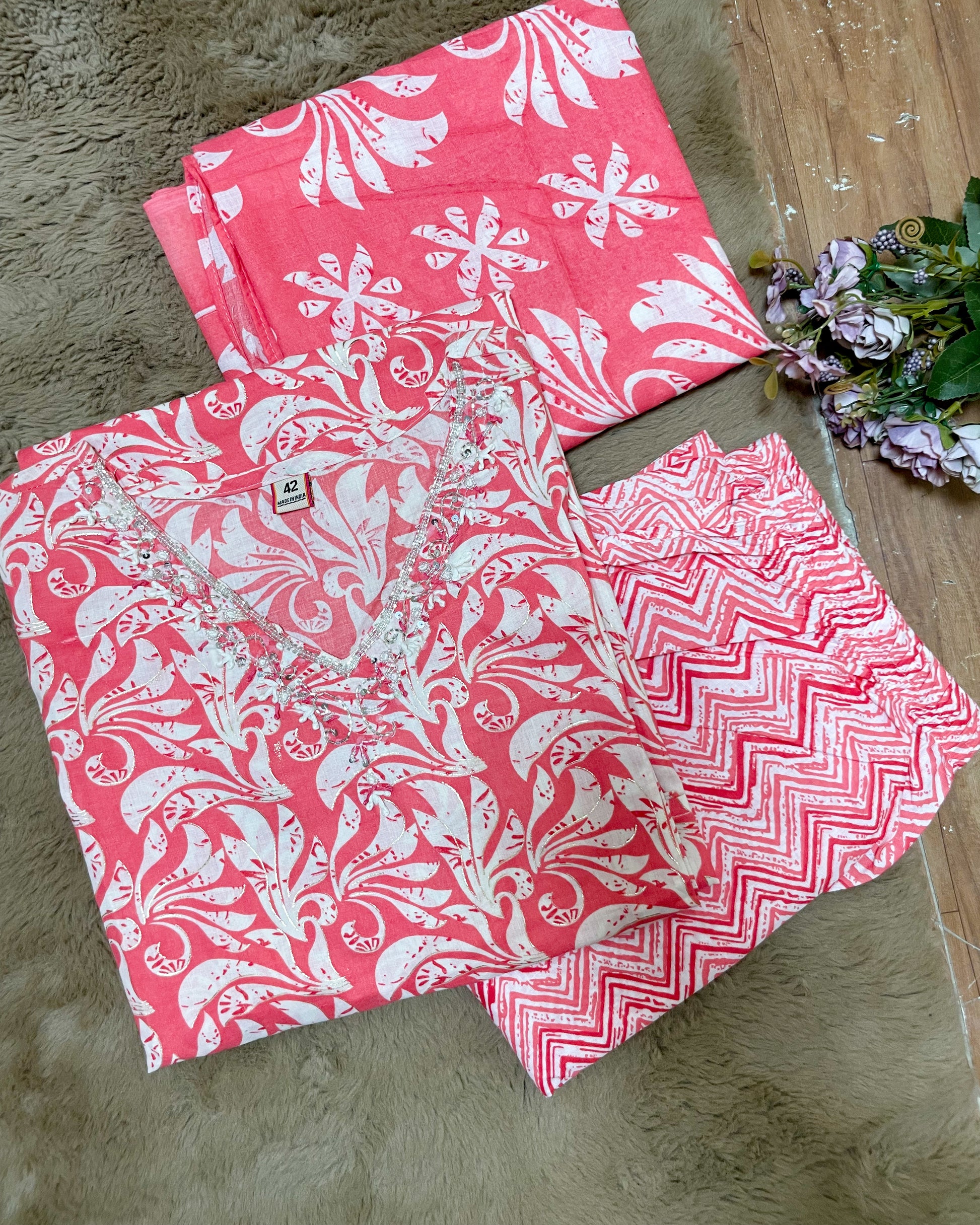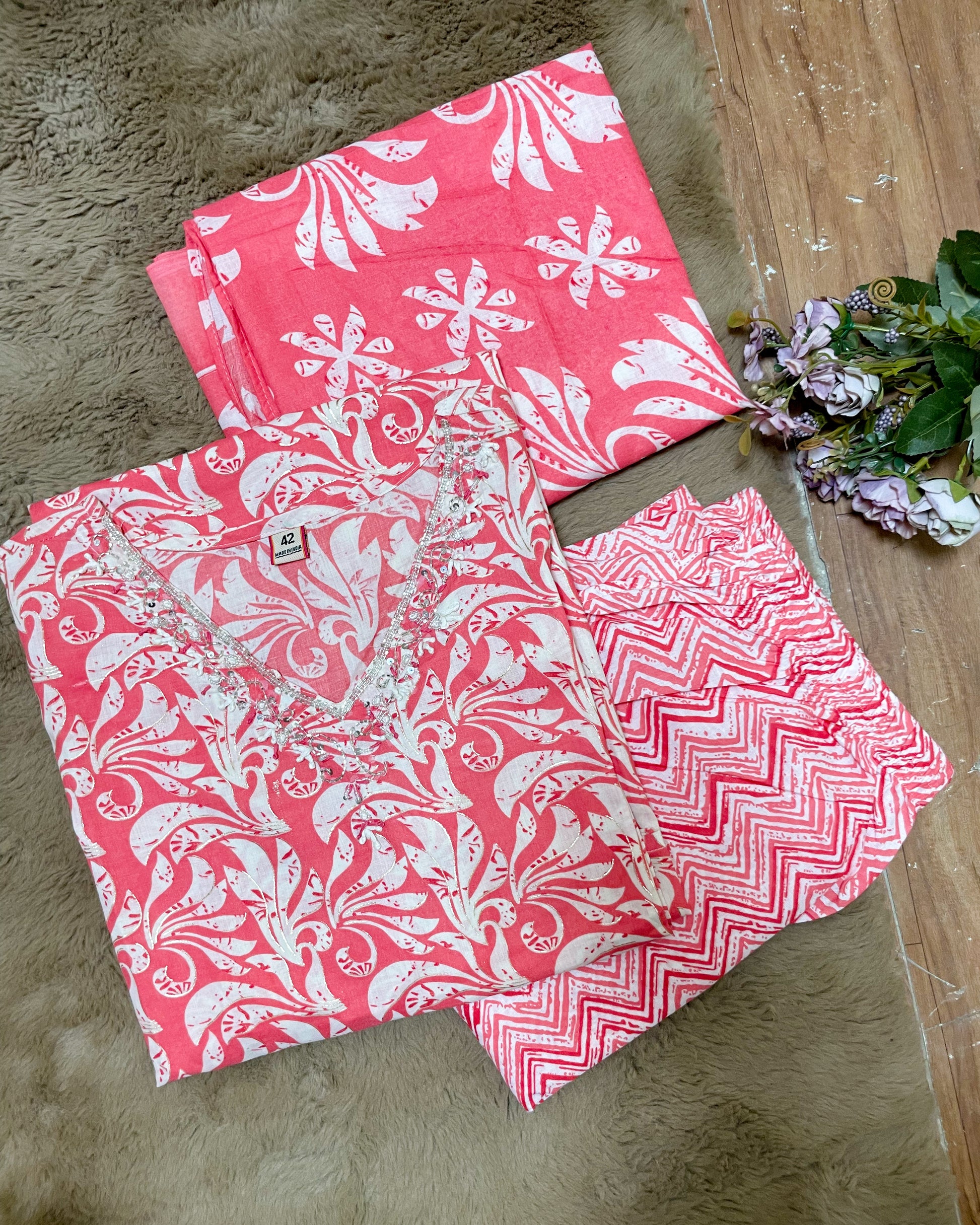✔ Set Includes: Printed Kurta + Printed Cotton Pants + Full-Length Printed Dupatta