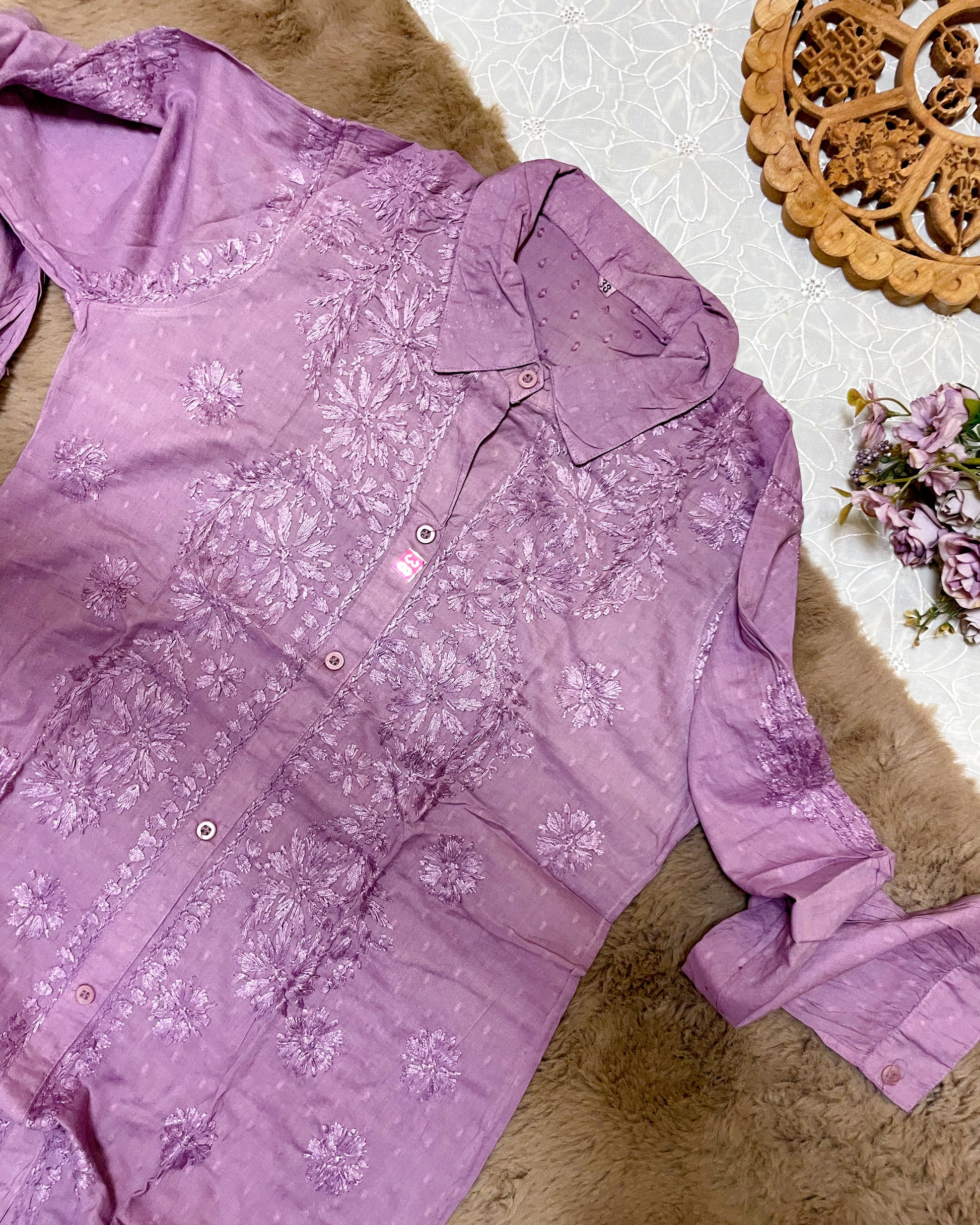 Elegant in its simplicity, the Noor Long Shirt is crafted in soft, breathable mul cotton and adorned with delicate hand-embroidered chikankari. Its flowy silhouette and timeless appeal make it a perfect choice for office days, everyday errands, or even vacation styling.