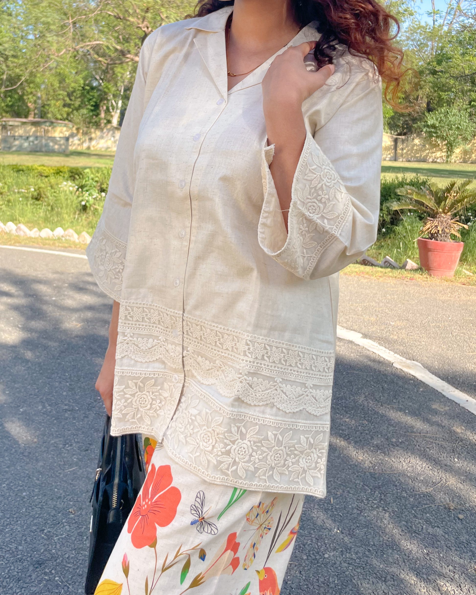 ๐ Embroidery: Chikankari detailing on top & sleeves