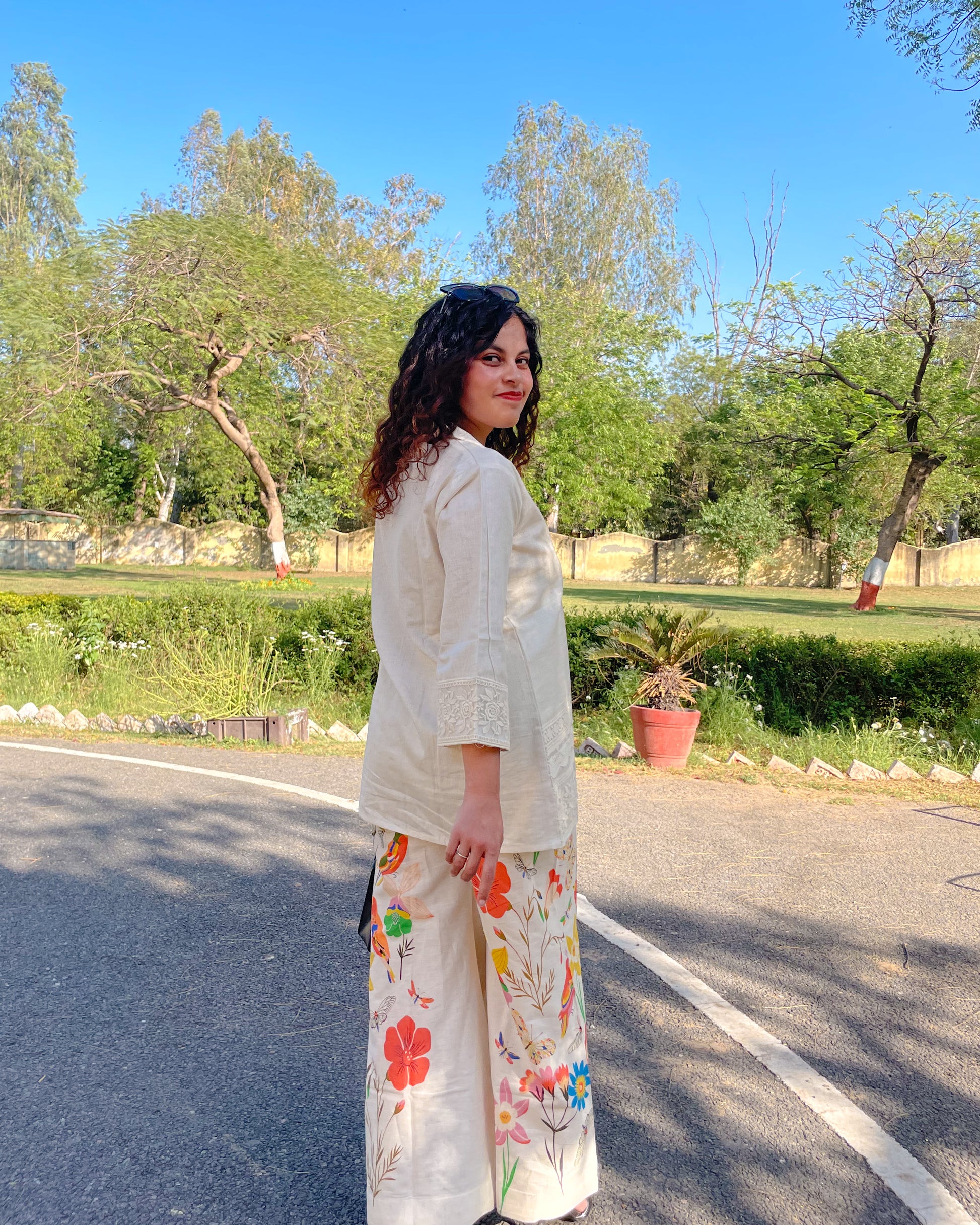 ๐ Bottom Style: Flowy, floral-printed palazzo